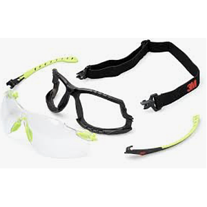 Solus™ Kit de Gafas Mica Clara Anti-Empaño Scotchgard™ con Patillas- Banda Elástica y Junta de Espuma- Marco Verde